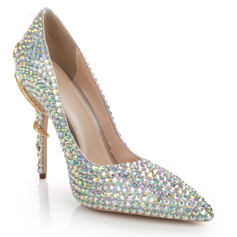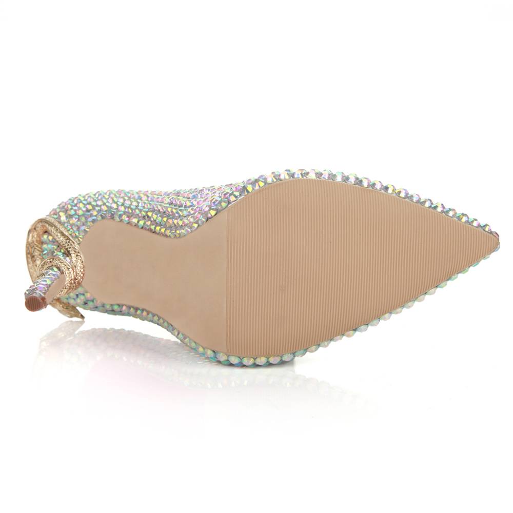 Genuine Sheepskin Leather Rhinestone Pointed Toe Stiletto Heels