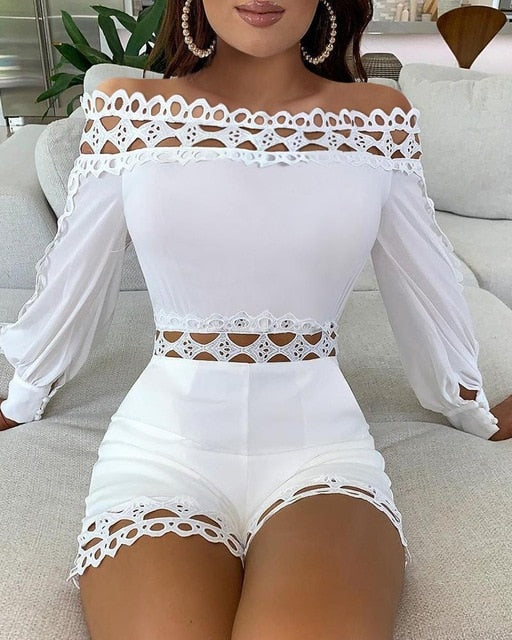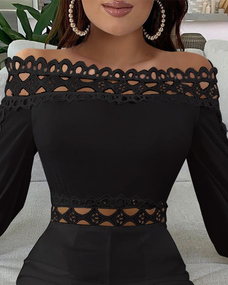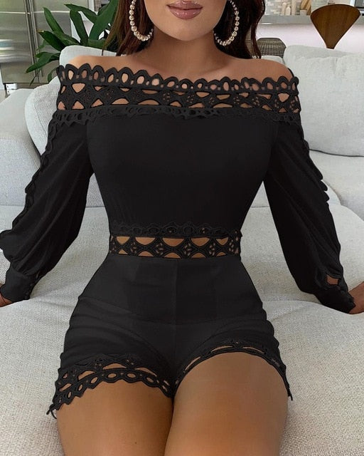 Long Sleeve Hollow Out Rompers with Solid Pattern, Long Sleeve, and Polyester Material