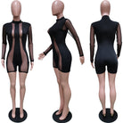 Long-Sleeved Polyester Spandex Rompers with Solid Stripe See-Through Design