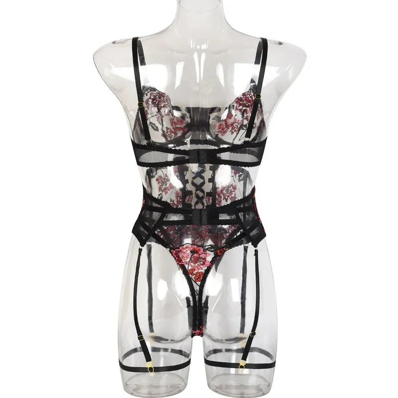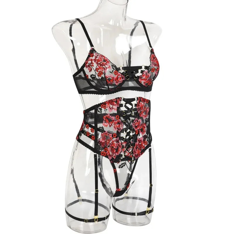 Indulge in the beauty and luxury of our lingerie set. Featuring delicate floral embroidery on a linen and polyester blend, this set exudes style and comfort. Elevate your lingerie collection and feel confident and alluring with this must-have set.