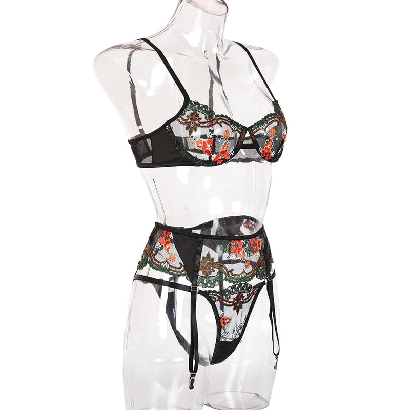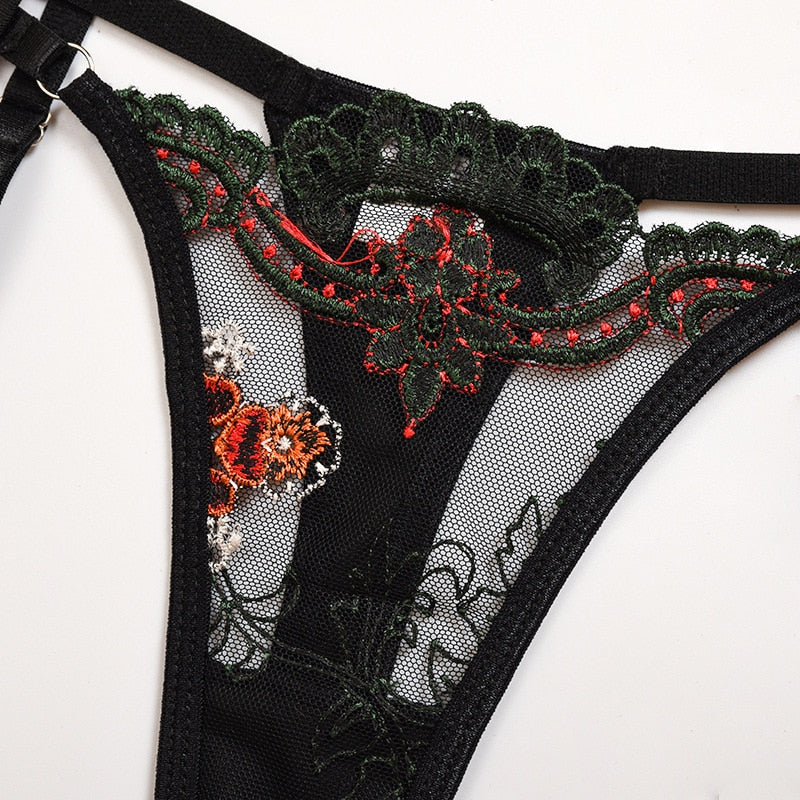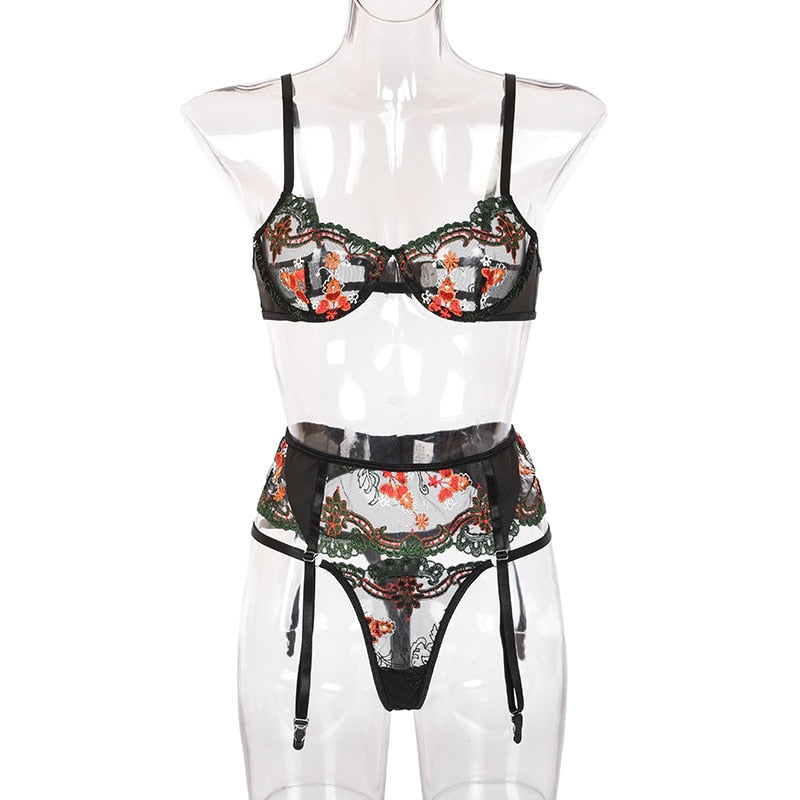 Underwire Lingerie Sets with Floral Pattern and Polyester Spandex Material