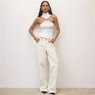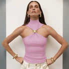The Hit My Mind Tank Top commands attention with its bold halter neckline and sleek sleeveless silhouette. Crafted from a responsive polyester and elastane blend, this piece moves with you while maintaining its shape through every wear. The clean solid design makes it effortlessly versatile—dress it up for nights out or keep it casual for everyday confidence. Perfect for those who aren't afraid to make a statement.