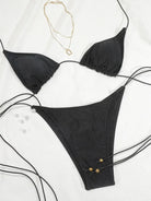 Turn heads in this daring side-tie string bikini designed for confidence and allure. The minimalist cut features adjustable side ties that let you customize the fit while showcasing your curves. Crafted from premium stretch fabric, it offers comfort and support for all-day wear. Perfect for beach days, poolside moments, or making a bold statement.