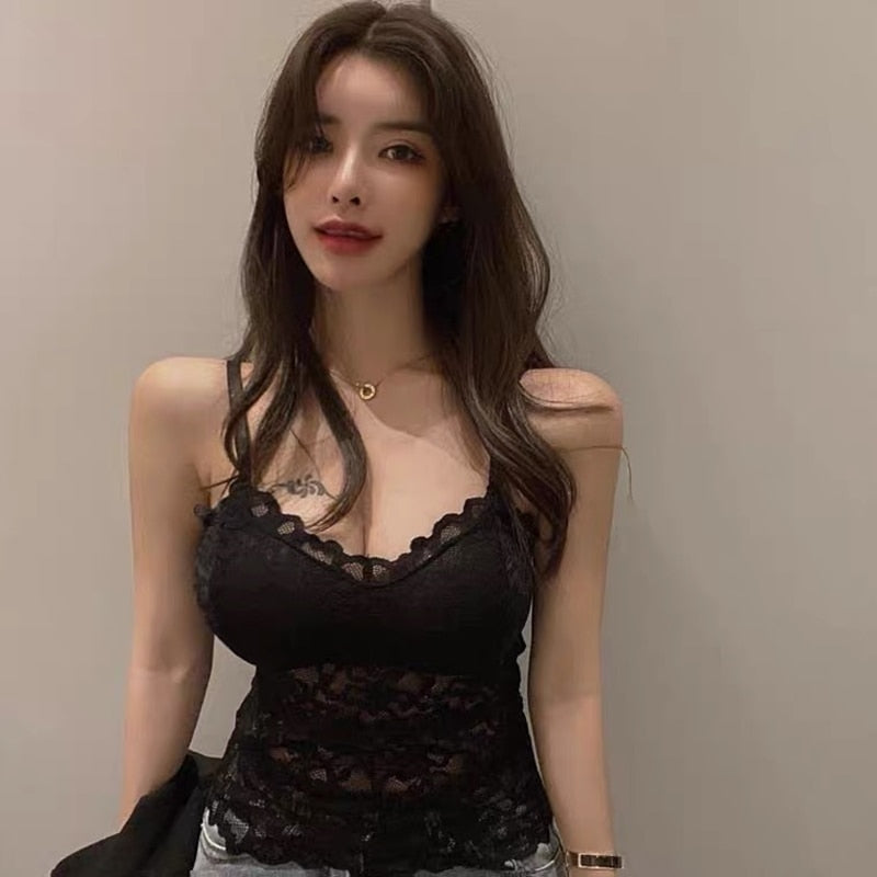Lace Camisole Top Made From Cotton Spandex Material in Floral Pattern
