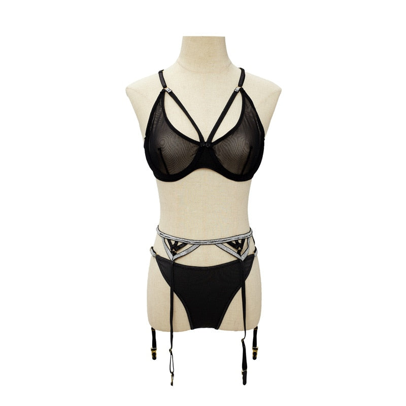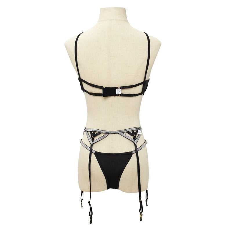 This lingerie set is perfect for your next romantic evening. It's black, comfortable, and simple. It has a back closure, which is perfect for any type of body.