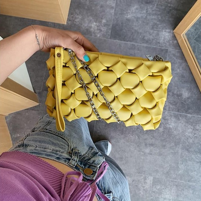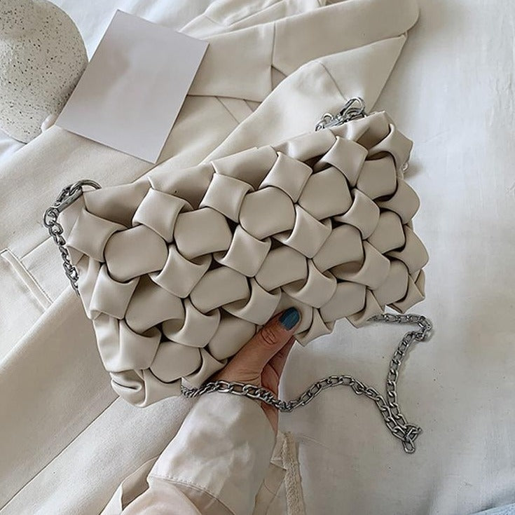 Geometric Patterned Shoulder Bag with PU and Polyester Material