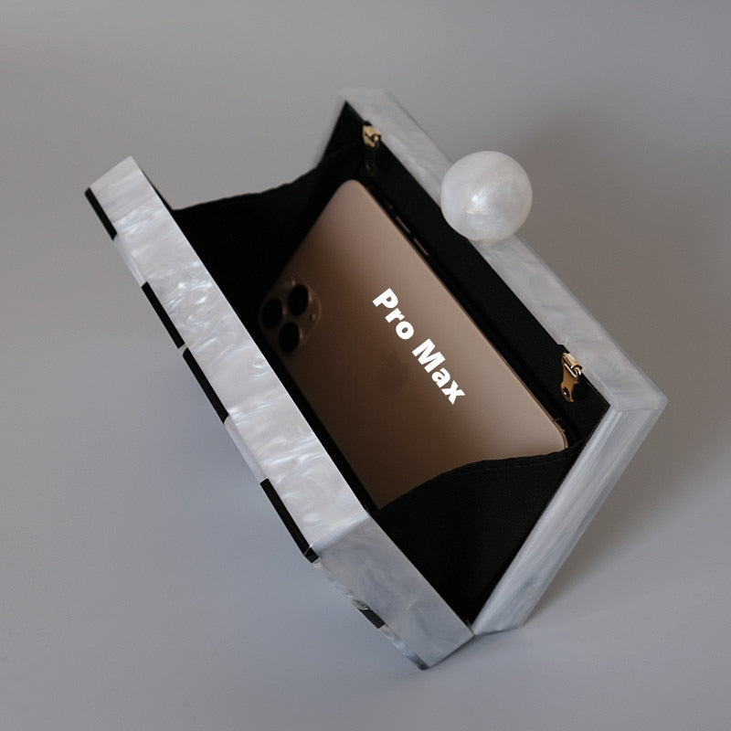 Hasp Closure PVC Clutch with Geometric Pattern and Detachable Chain Strap
