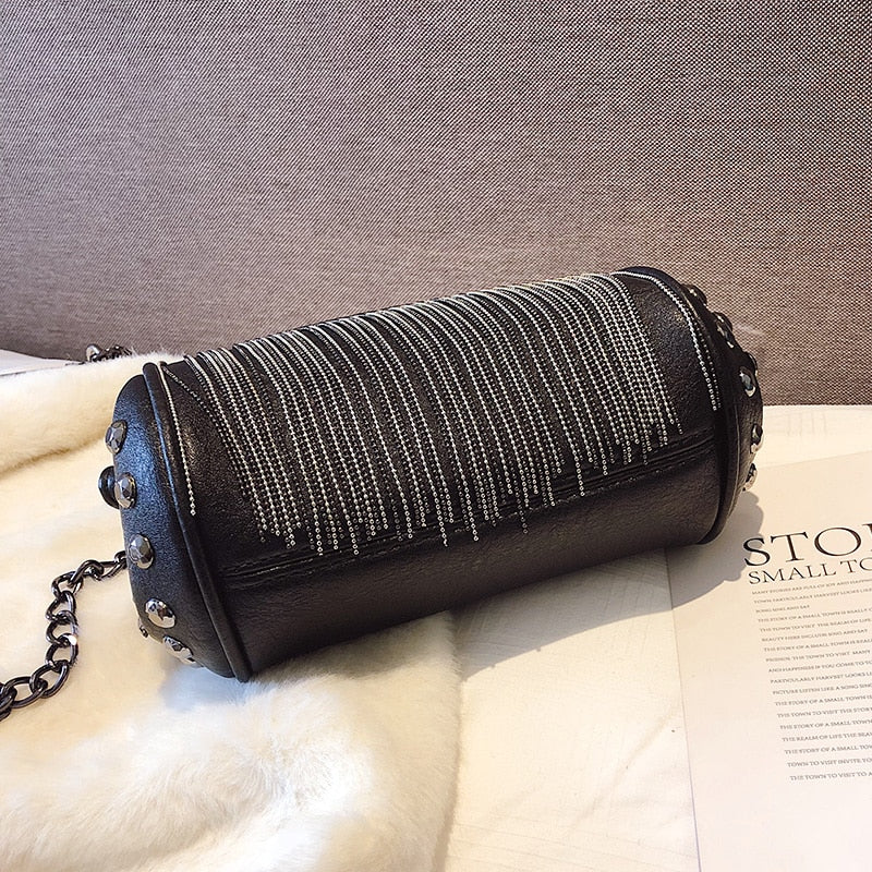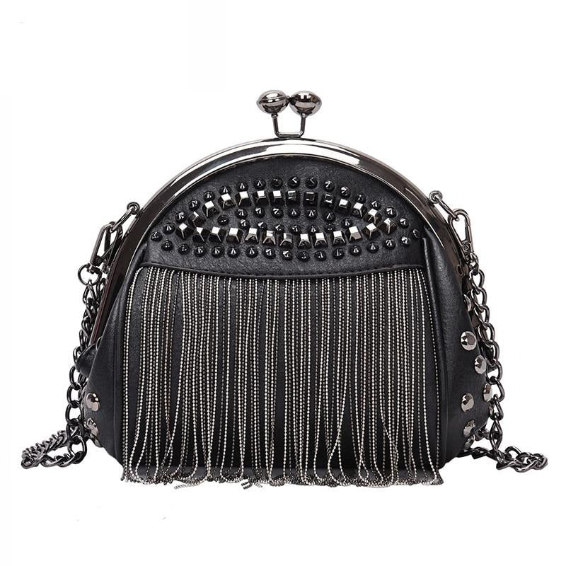 Rivet and Tassel Decorated Sling Bag with PU Material