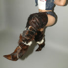 Own the room in these Whiskey Rose Over-the-Knee Boots, where raw elegance meets fearless attitude. Crafted from striking horsehair uppers, they deliver texture and presence that commands respect. The pointed toe cuts a sharp, sophisticated line that elongates your silhouette and amplifies your power. These aren't just boots—they're a declaration of confidence.