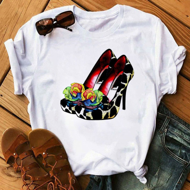 Cotton Modal Polyester T-Shirt with Various Heels Design Print
