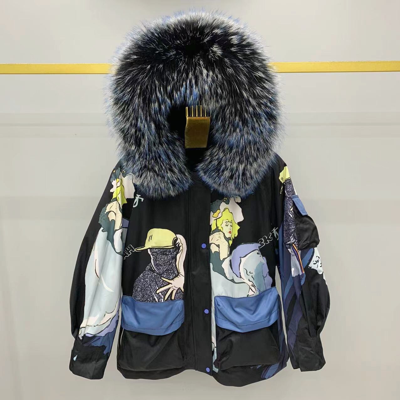 This women's jacket offers a stylish and warm addition to any wardrobe. Crafted from thick polyester and embellished with a printed pattern, this jacket also features a fur hooded style and is finished in a classic black color. Keep warm in the coldest days of winter with The First Snow In August Jacket.