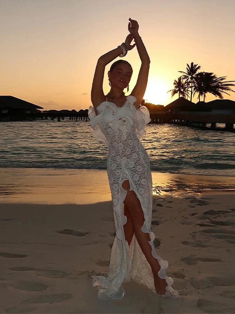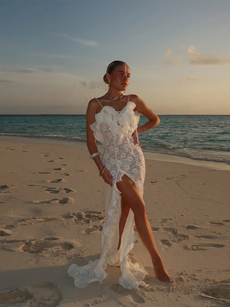 Sleeveless Hollow Ruffle Long Dress