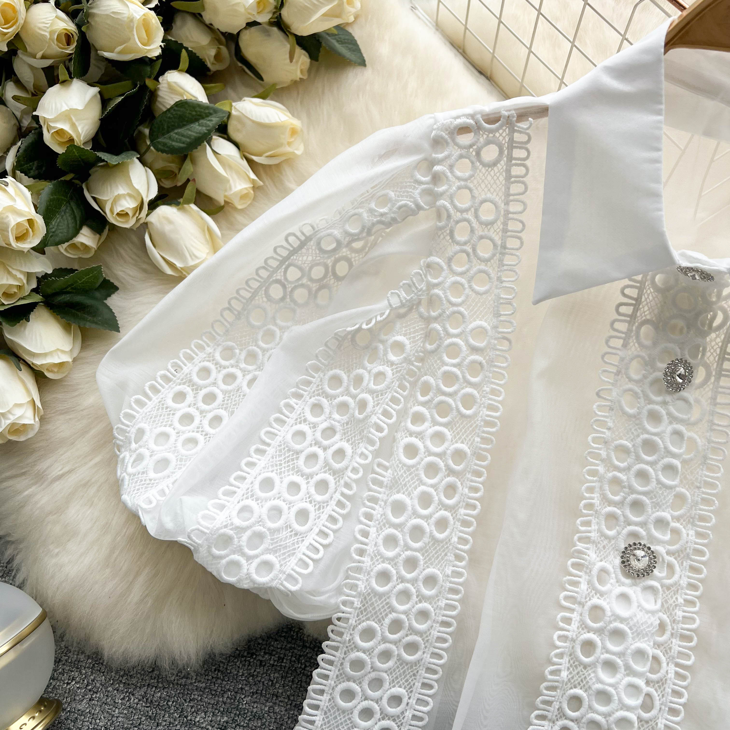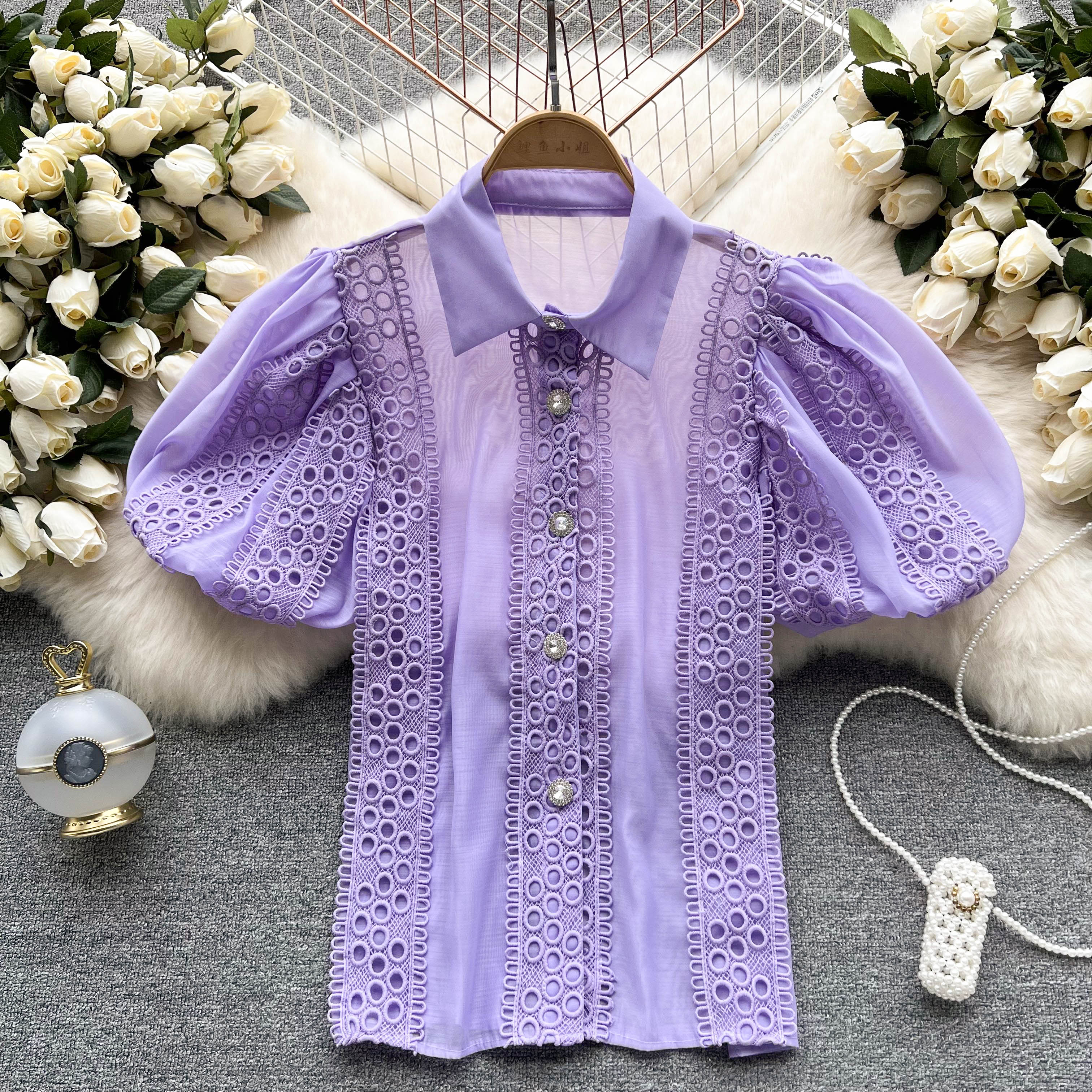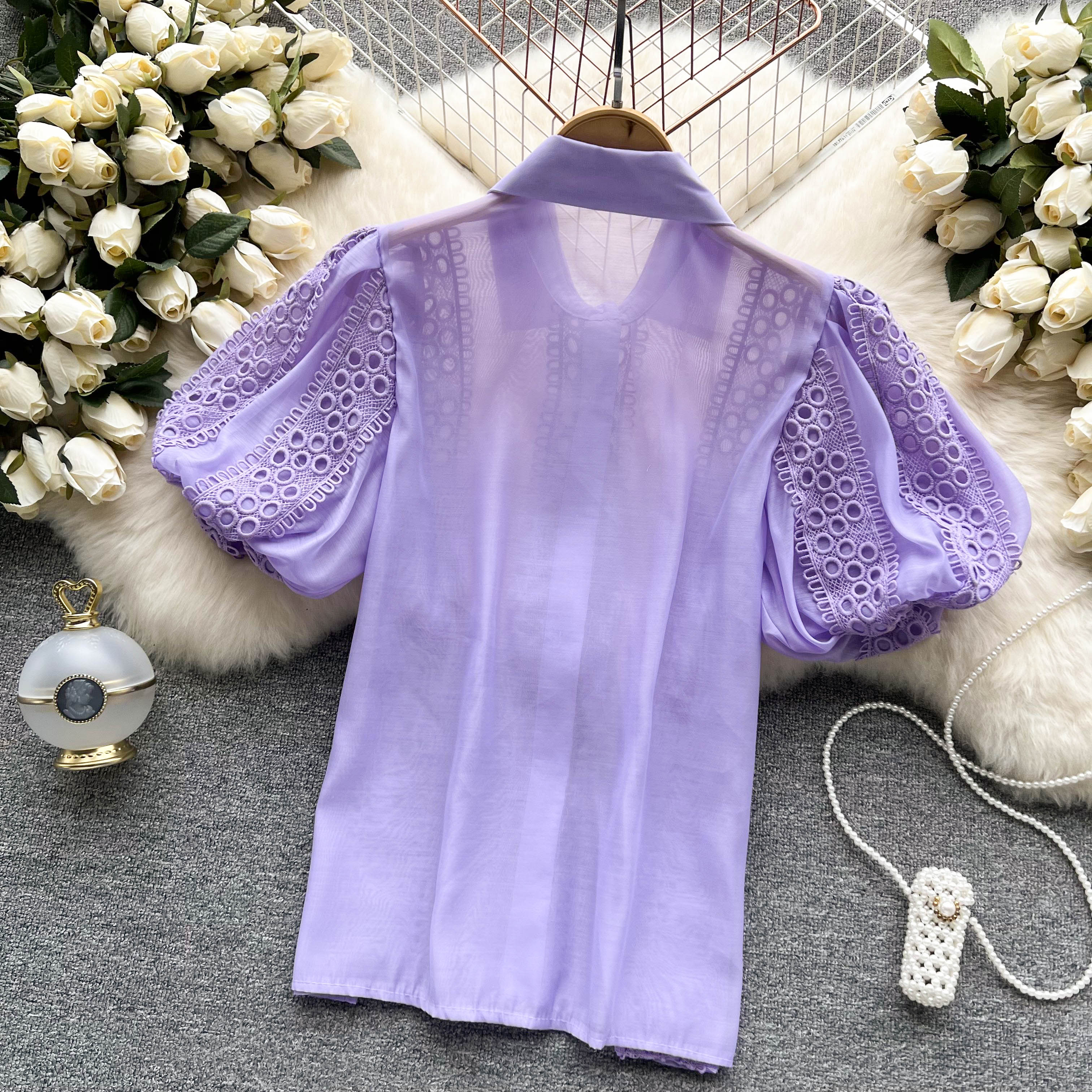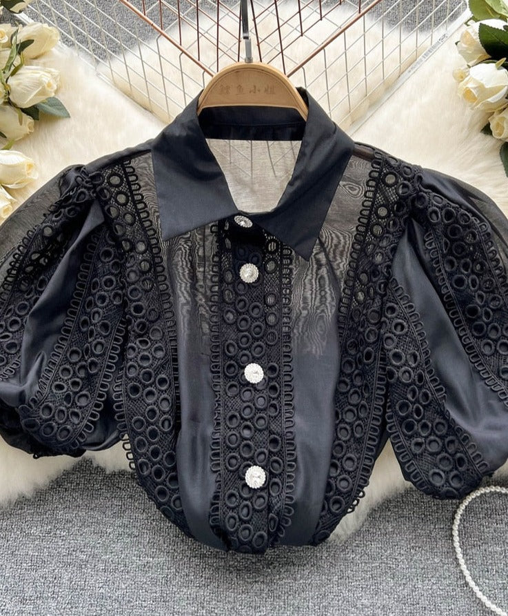 This is the perfect blouse for the stylish and sophisticated woman who would like to add a feminine touch to her wardrobe. It has a sophisticated lace design that adds a feminine touch to your look. An elegant design with a puff sleeve, this blouse is a great way to make a statement. The soft cotton fabric is perfect for everyday wear and will make her comfortable all day long.