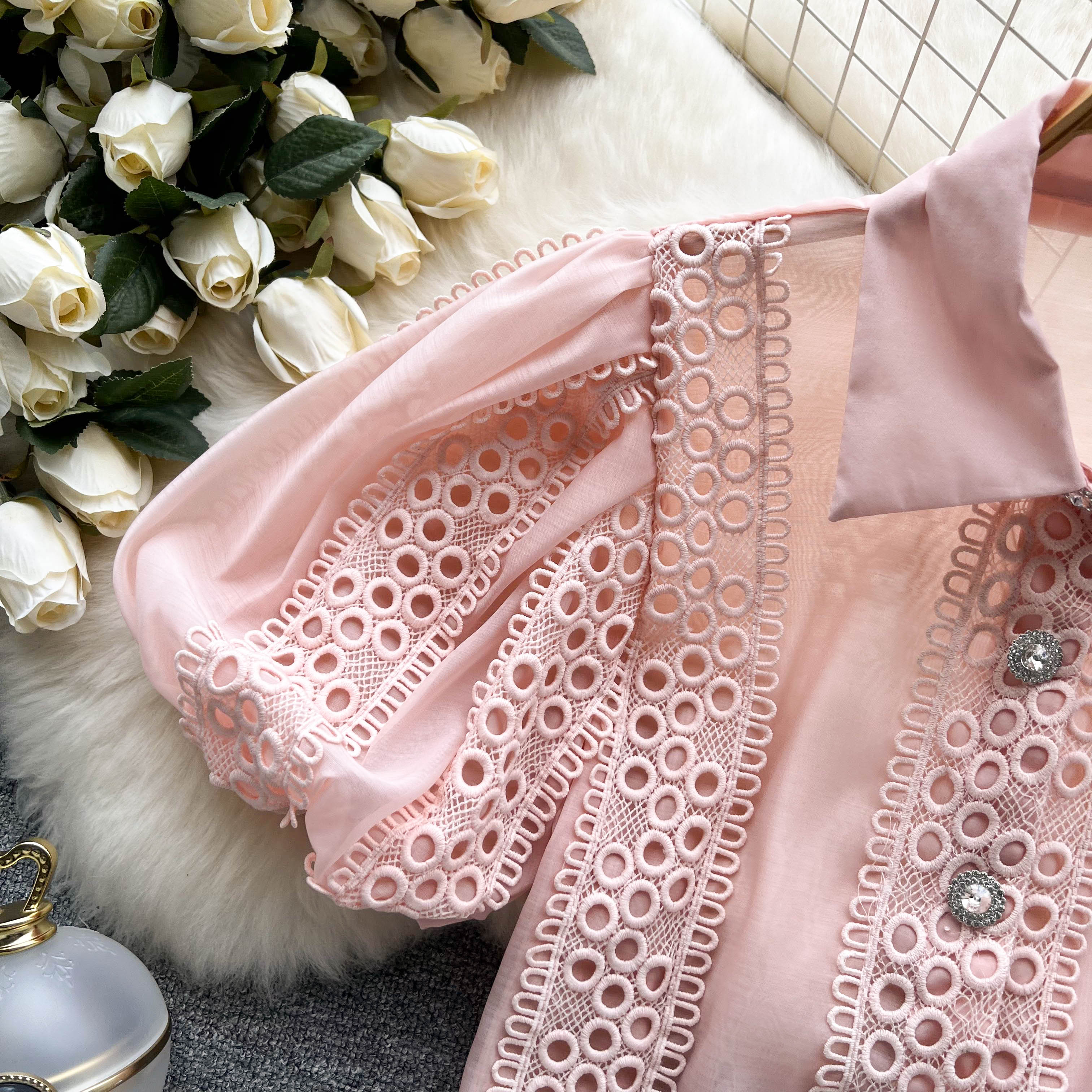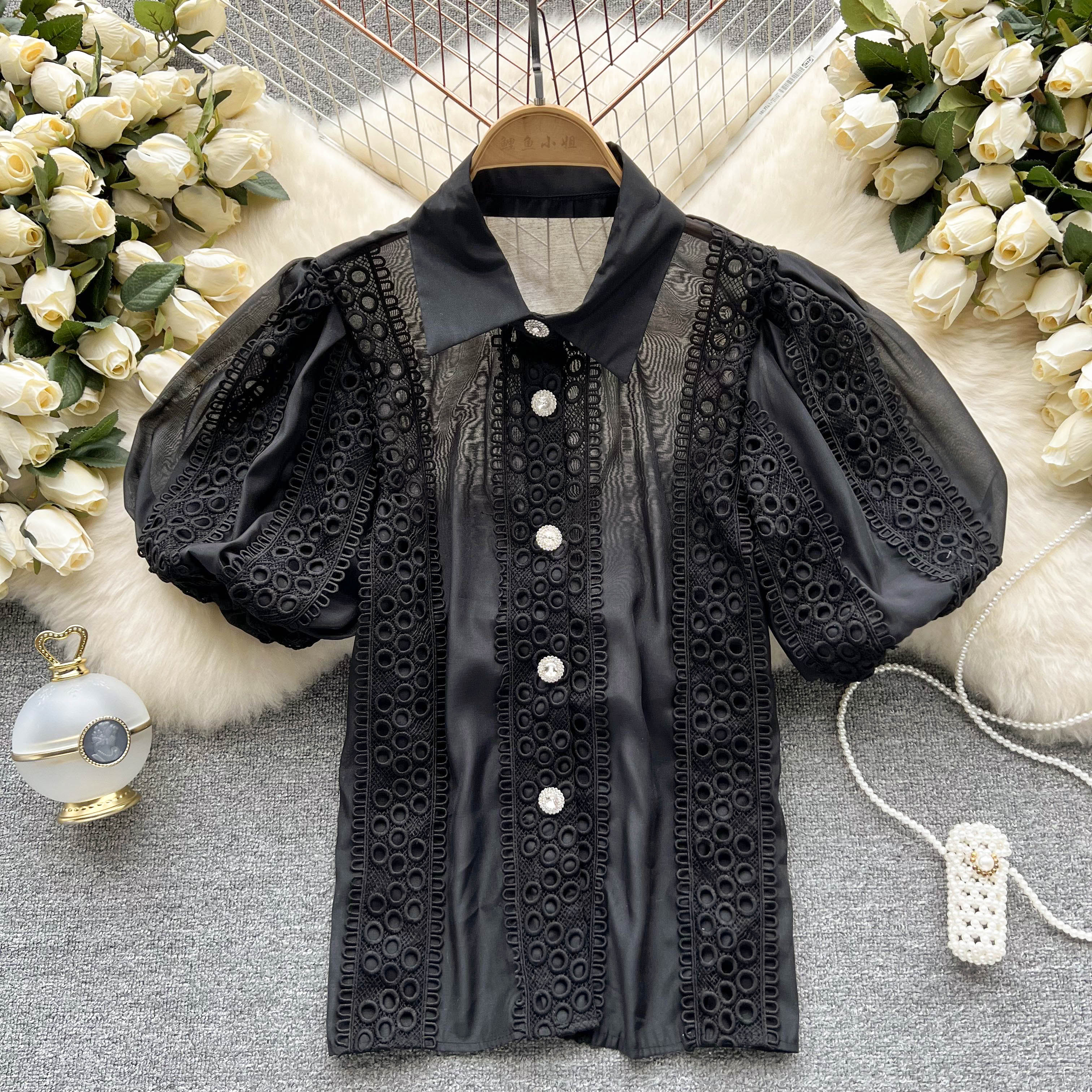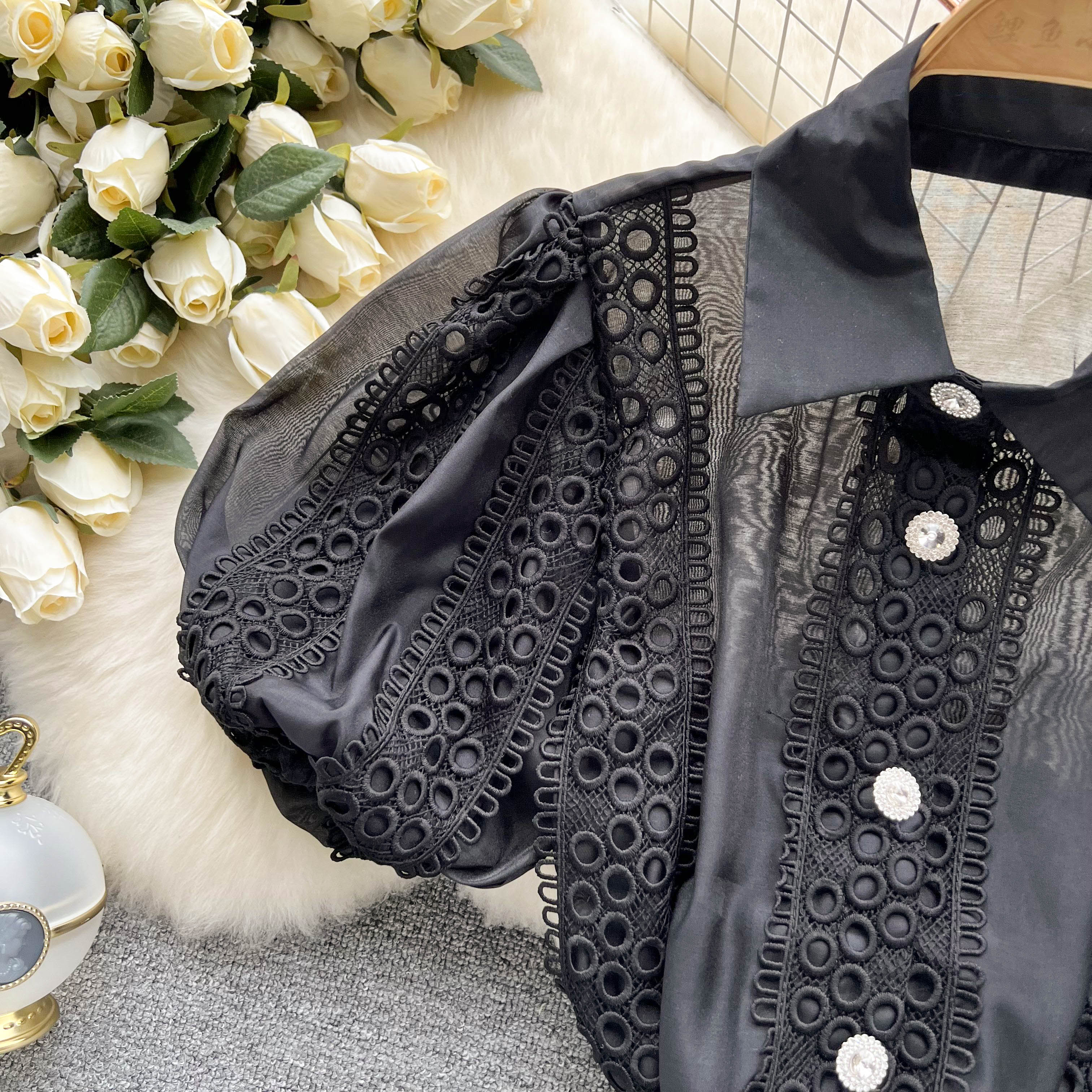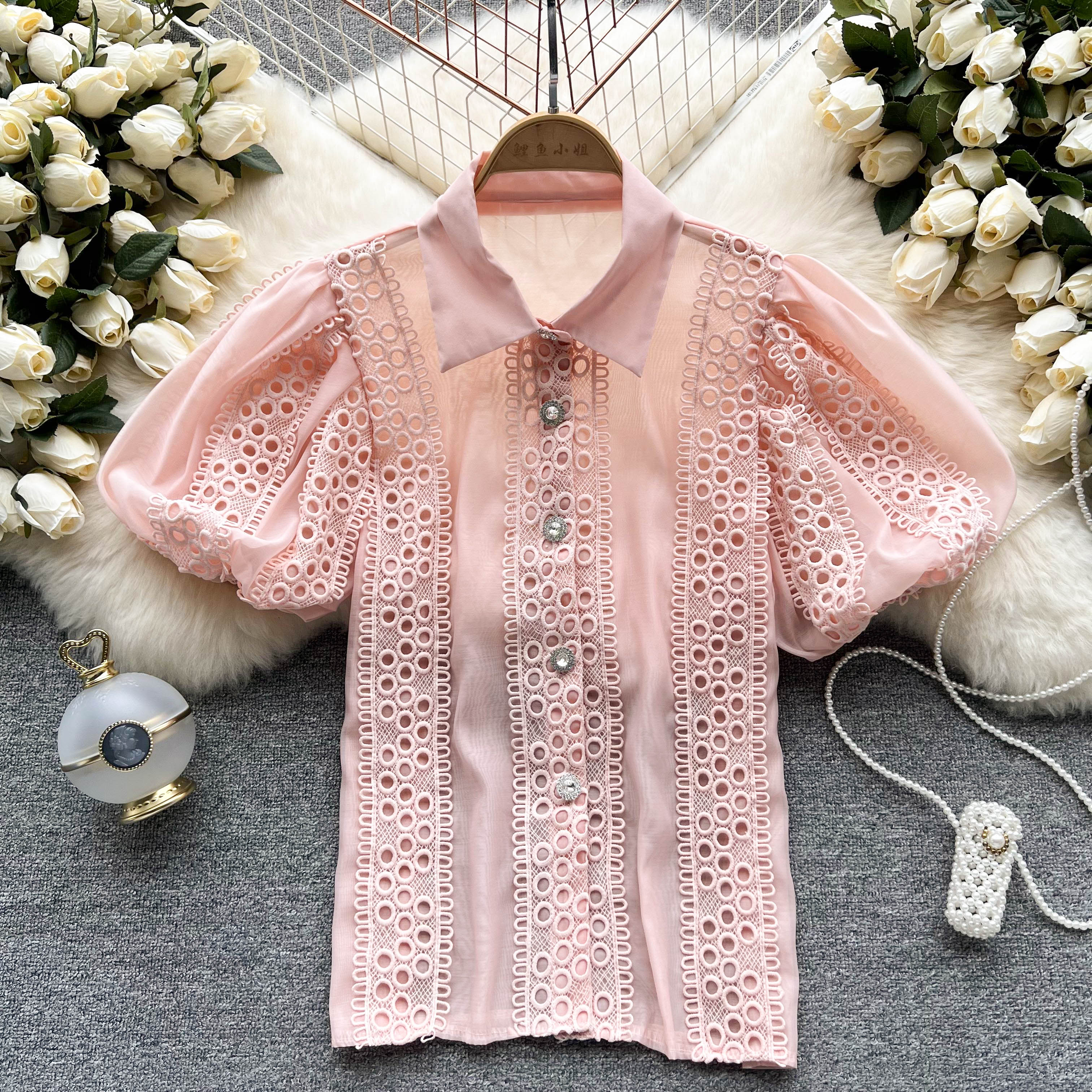 This is the perfect blouse for the stylish and sophisticated woman who would like to add a feminine touch to her wardrobe. It has a sophisticated lace design that adds a feminine touch to your look. An elegant design with a puff sleeve, this blouse is a great way to make a statement. The soft cotton fabric is perfect for everyday wear and will make her comfortable all day long.