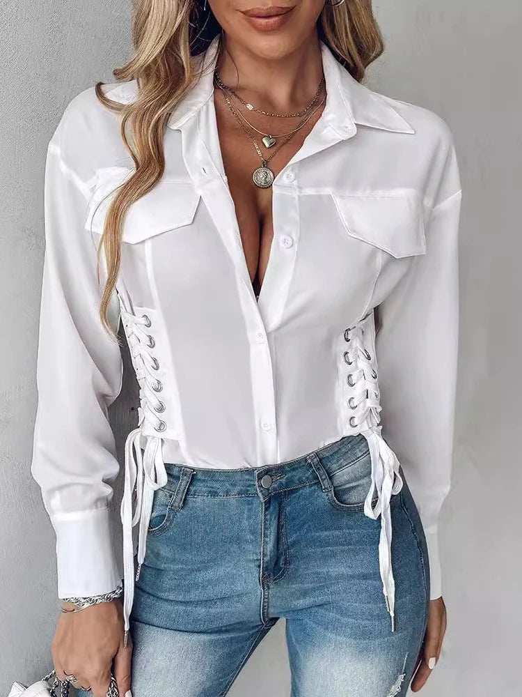 Wrap yourself in comfort with our shirt! Made with soft and lightweight polyester, this solid shirt is the perfect everyday staple. The delicate lace detailing adds a touch of elegance, making it a versatile piece for any occasion. Say goodbye to worrying.