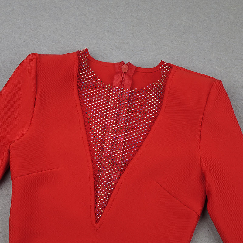 Long-Sleeved Bodycon Mini Dress with Rhinestone Applique Decoration