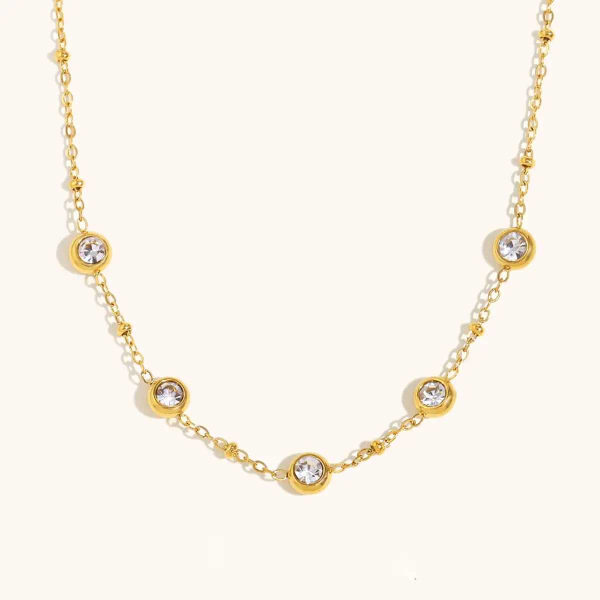 The Eyes Like Midnight Station Necklace features sleek stainless steel stations that create a striking, daring look. This metal necklace is designed to catch the eye and add an edgy, confident vibe to any outfit, perfect for those who aren’t afraid to stand out.