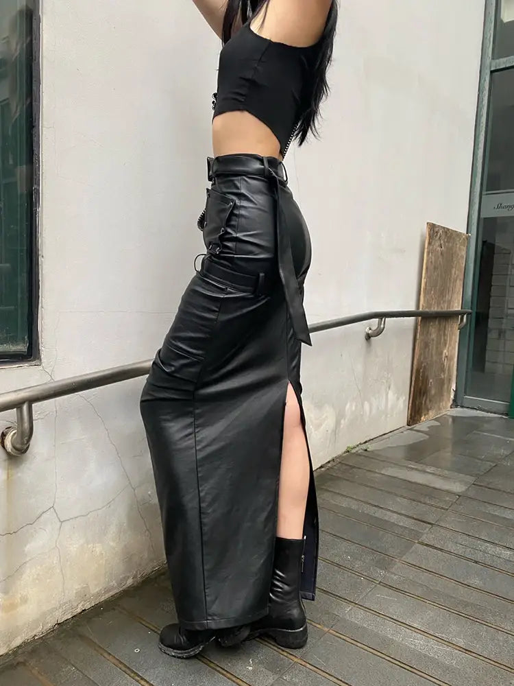 Indulge in the edgy, yet elegant style of our Love Is Like A Fire Maxi Skirt. Made from high quality faux leather, this punk-inspired piece exudes confidence and sophistication. Its non-stretch material ensures a unique fit, while the solid pattern adds a touch of boldness to any outfit. Ignite your style with this fiery maxi skirt!