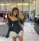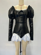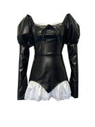 Bold patchwork design meets fearless style in this mini dress that refuses to blend in. Crafted from polyester and PU, it combines contrasting textures for maximum impact and durability. Make a statement with this daring piece that commands attention.