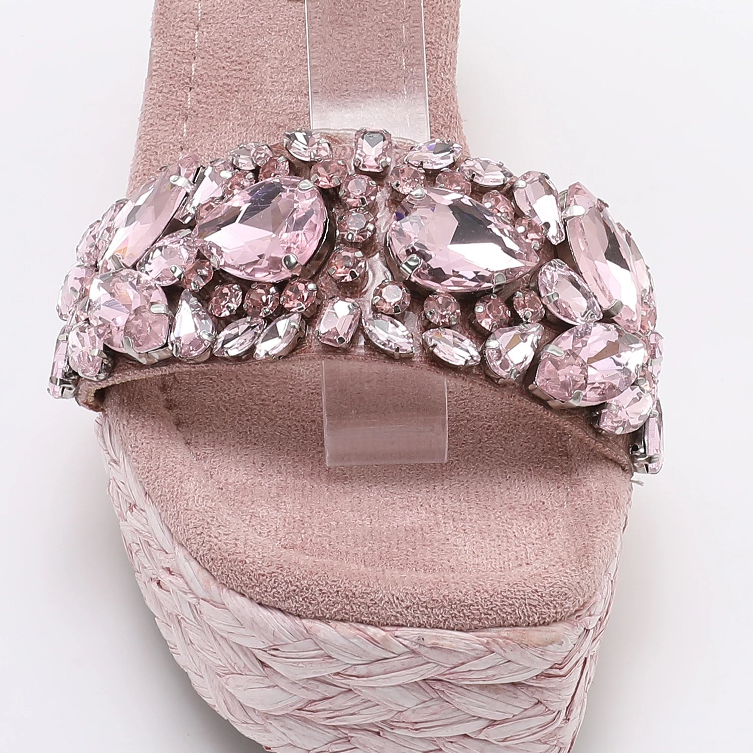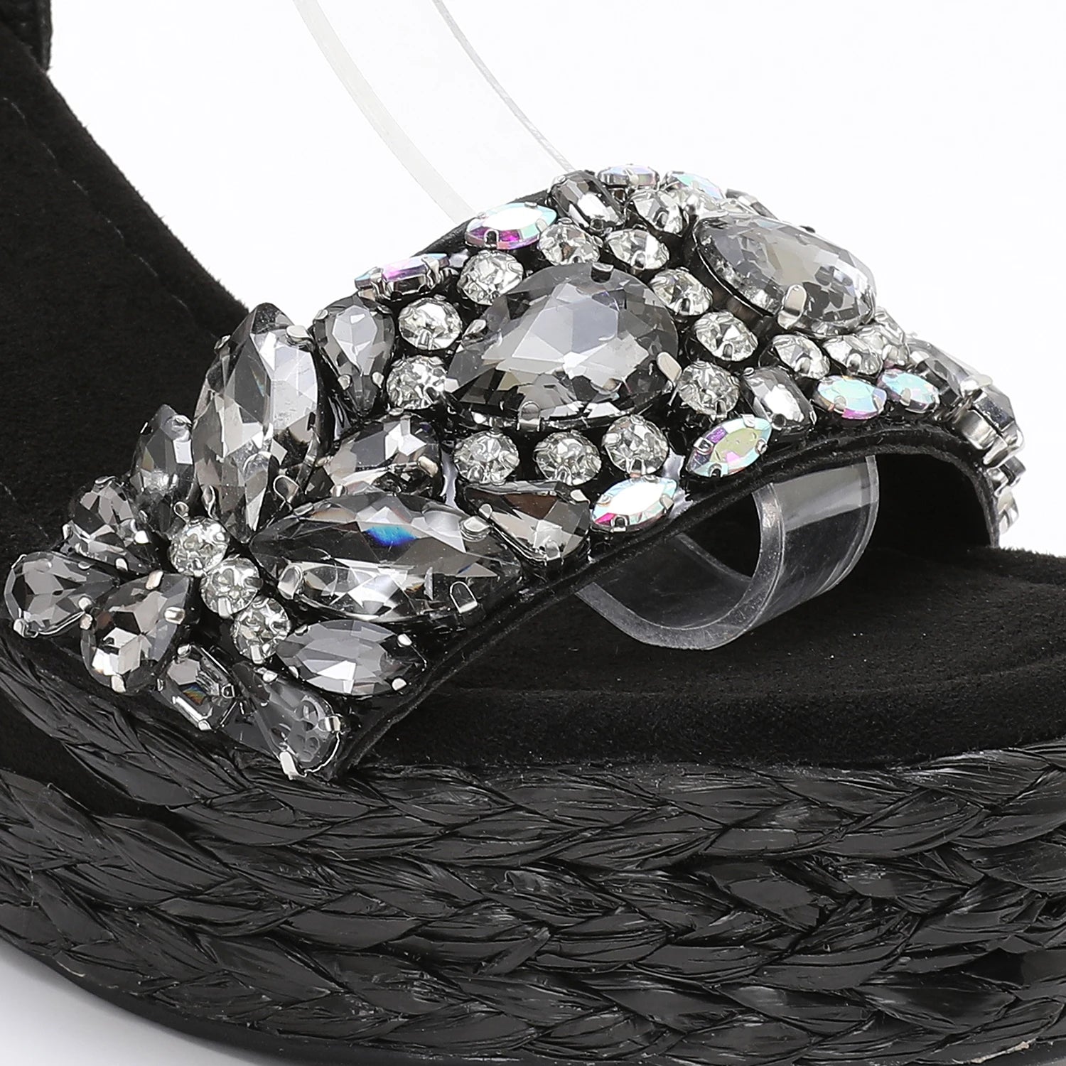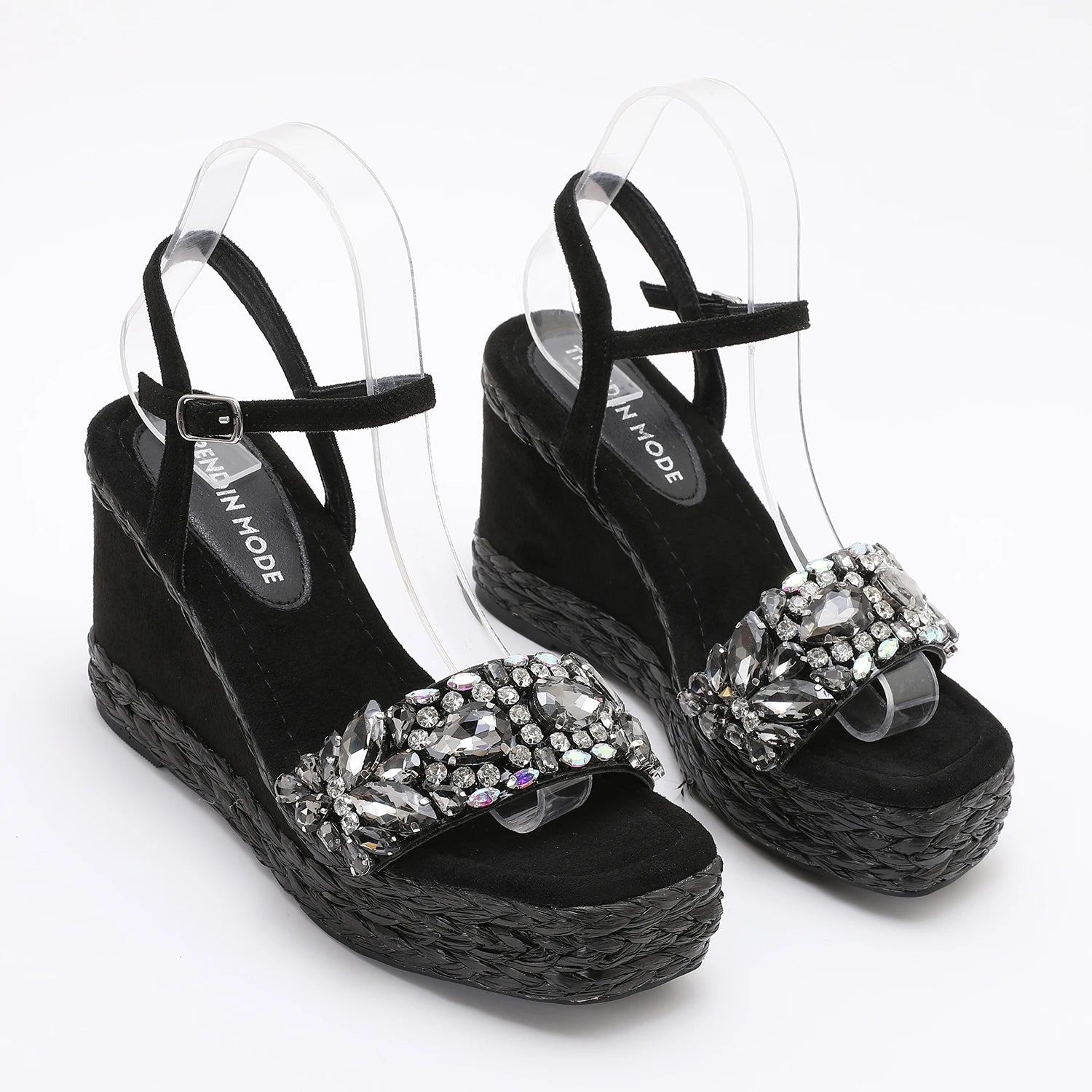 Elevate your style with these stunning Rhinestones Velvet High Wedges Sandals. Crafted from luxurious velvet fabric, these sandals feature eye-catching rhinestone embellishments that add glamour to any outfit. The comfortable wedge heel provides excellent support while giving you a flattering lift. The soft velvet material feels gentle against your skin, while the secure fit keeps you comfortable all day long.