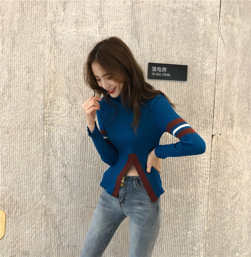 Knitted Turtleneck Patchwork Sweater with Viscose and Polyester Material