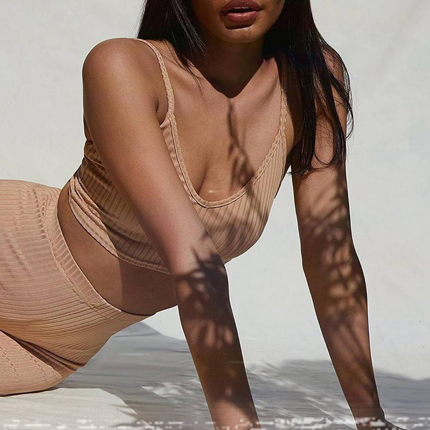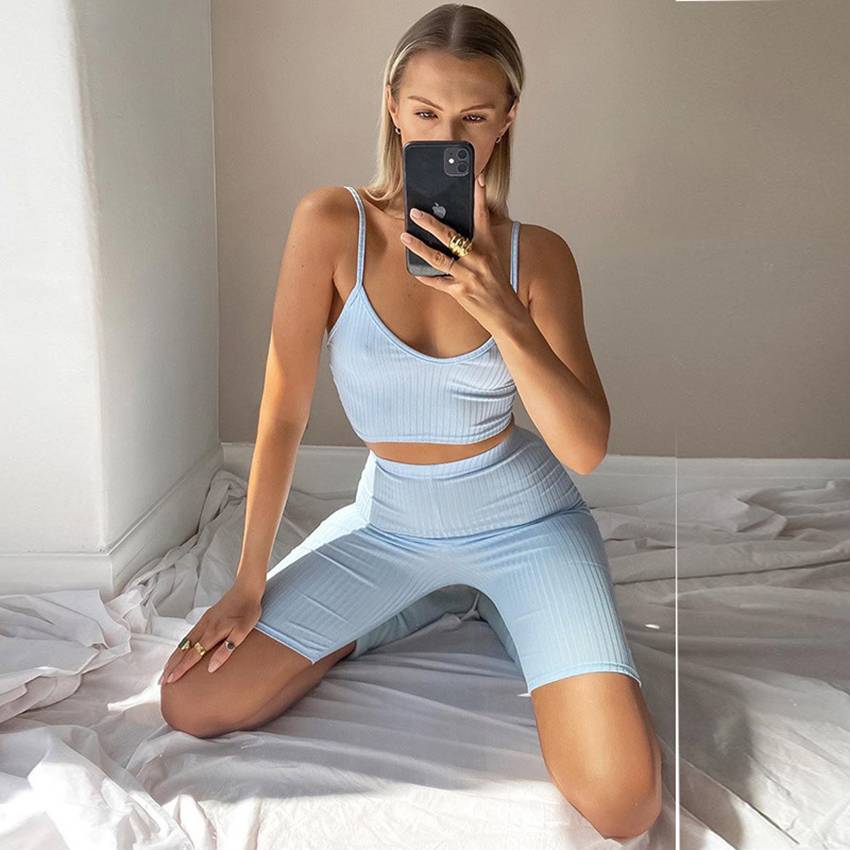 Spandex Polyester Elastic Waist Sleeveless Mini Short Sets