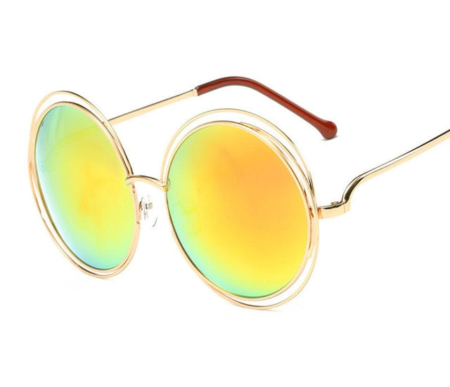 Plastic Frame UV400 Mirror Lens Round Sunglasses