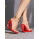 Step into bold confidence with these Transparent Open Toe Hollow Heels Sandals. Crafted from sleek PVC material, they deliver an edgy, modern aesthetic that commands attention. Whether you're hitting the club or turning heads at a night out, these sandals strike the perfect balance between daring style and wearable sophistication. Make a fearless fashion statement.