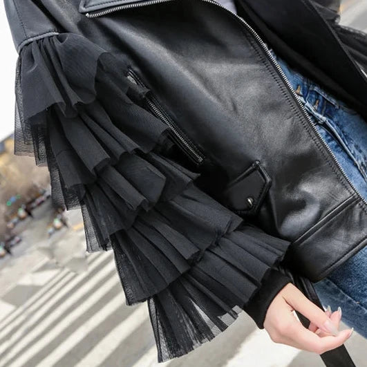 Unleash your inner fire with the Untamed Fire Jacket! Made of sleek and durable PU leather, this jacket is not only stylish but also functional with its zipper closure and butterfly sleeves. Stand out with the intricate lace decoration and feel confident with full coverage sleeves.