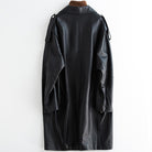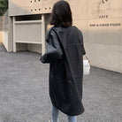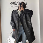 PU Leather Suede Turned Down Collar Dropped Shoulder Zippered Long Coat