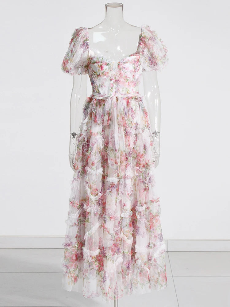 Don't miss out on the Been A Long Night Long Dress! This dress features a flattering ball gown silhouette, puff sleeves, and a beautiful floral pattern. The square collar and empire waistline add a touch of elegance, while the cotton and polyester material ensures comfort.