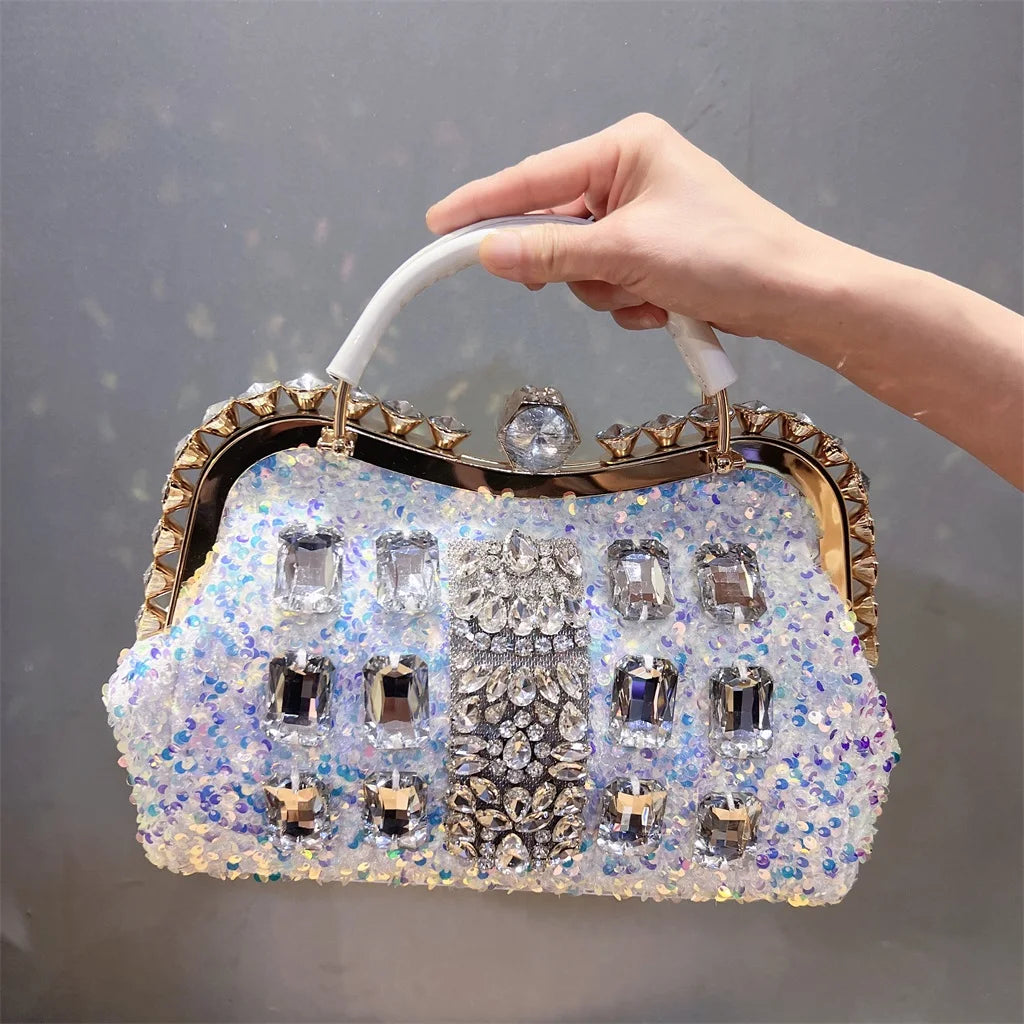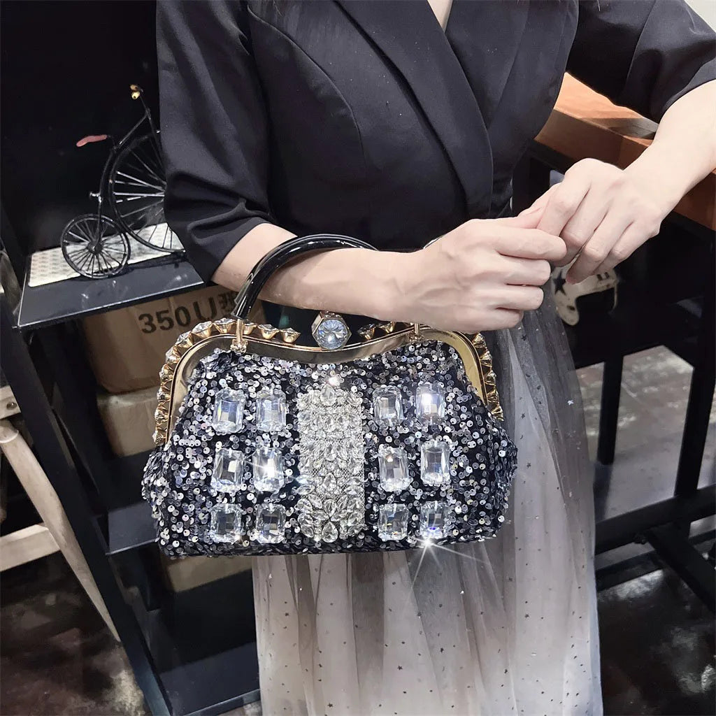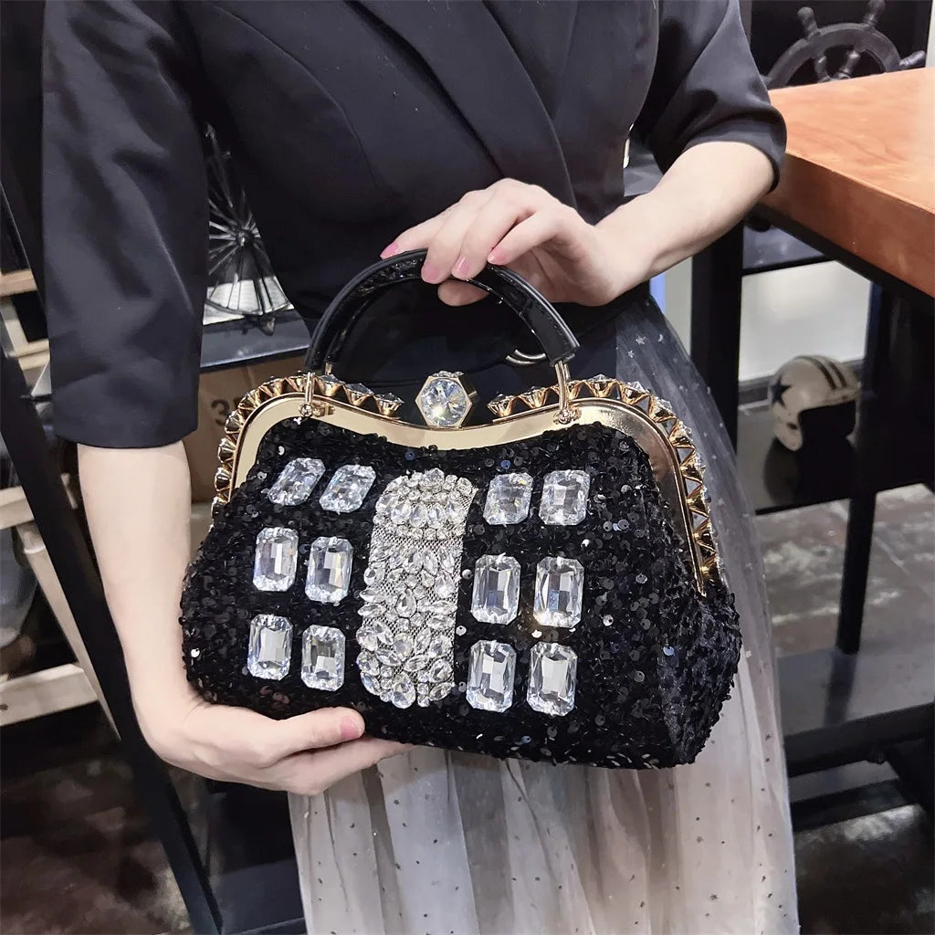 She Claims Space Handbag Make a bold statement with this daring PU handbag, adorned with shimmering rhinestones that catch every eye. Designed for those who refuse to blend in, this luxury piece combines edgy confidence with undeniable glamour. The lustrous embellishments elevate any outfit, while the structured silhouette commands attention.