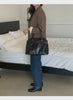 The Woman Decides Shoulder Bag commands attention with its bold, unapologetic design. Crafted from durable PU material, this statement piece delivers a sleek finish that resists wear while maintaining its sharp aesthetic. The structured silhouette and confident proportions make it the perfect companion for those who refuse to blend in.