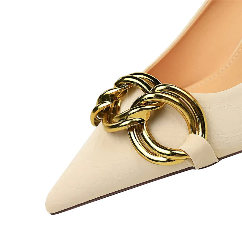 These All Of The Girls Stilletos feature a sleek, pointed toe and a super high 8cm+ heel for an elegant, elevated look. Each shoe is crafted from high-quality PU upper material, PU Insole and Lining, rubber outsole, and a stylish, secure chain decoration. The platform is 0-3cm for added stability. Slip On closure for easy wear.