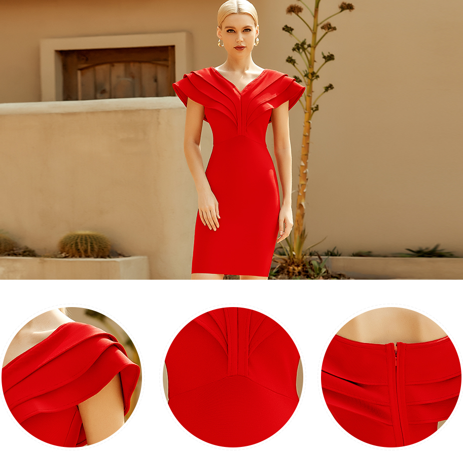 The ultimate in ease and comfort, these trendy dresses are made of a polyester spandex material for maximum comfort and breathability. Featuring short sleeves and a v-neck collar, it's a versatile style that can be worn for special occasions. The ruffles in the sleeve create a feminine look that is sure to set you apart.