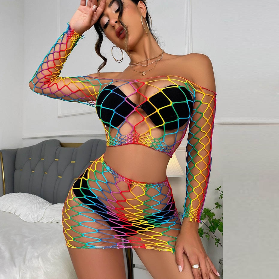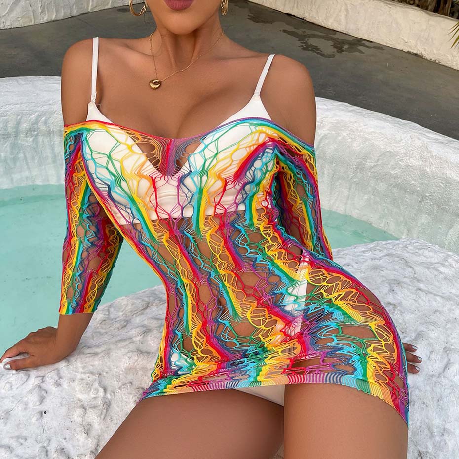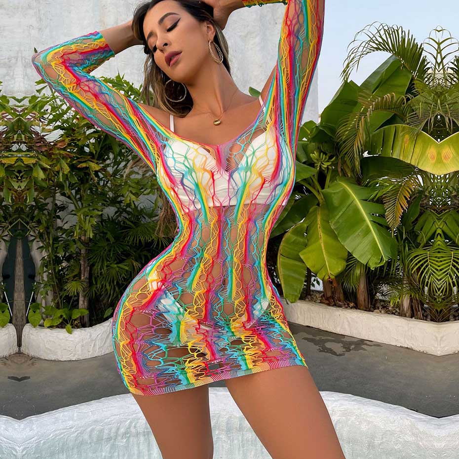 Intricately patterned with colorful stripes, this mini dress is crafted from a luxe blend of polyester and spandex. This garment is designed with a broadcloth fabric and features sheer accents.