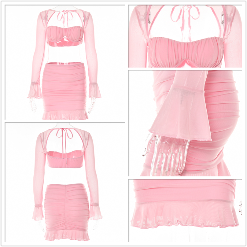 Dress for a night out in style with this trendy yet casual set. Pair with heels and a matching clutch for a playful look that is perfect for a night out. The set has a fun and flirty appearance that can be worn by most women. This set is the perfect way to add a feminine and flirty feel to your summer wardrobe.