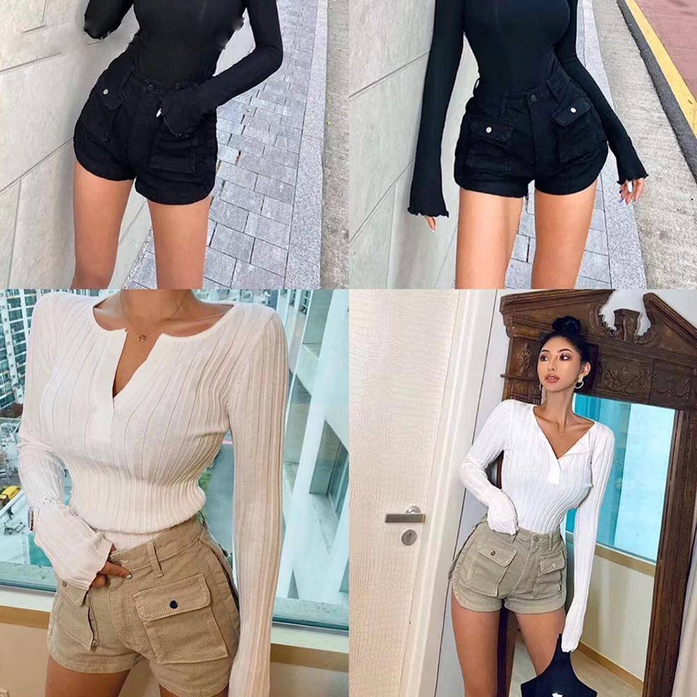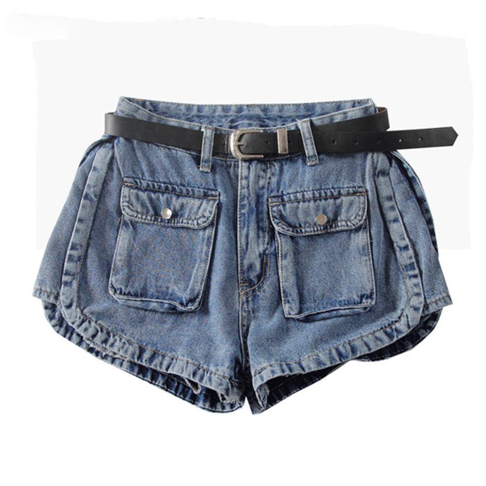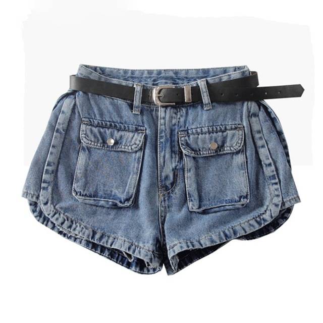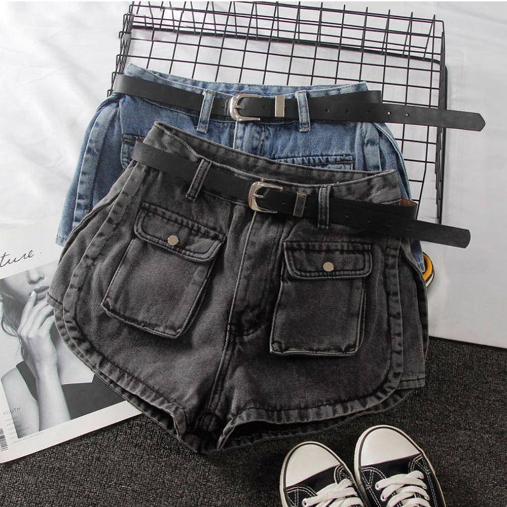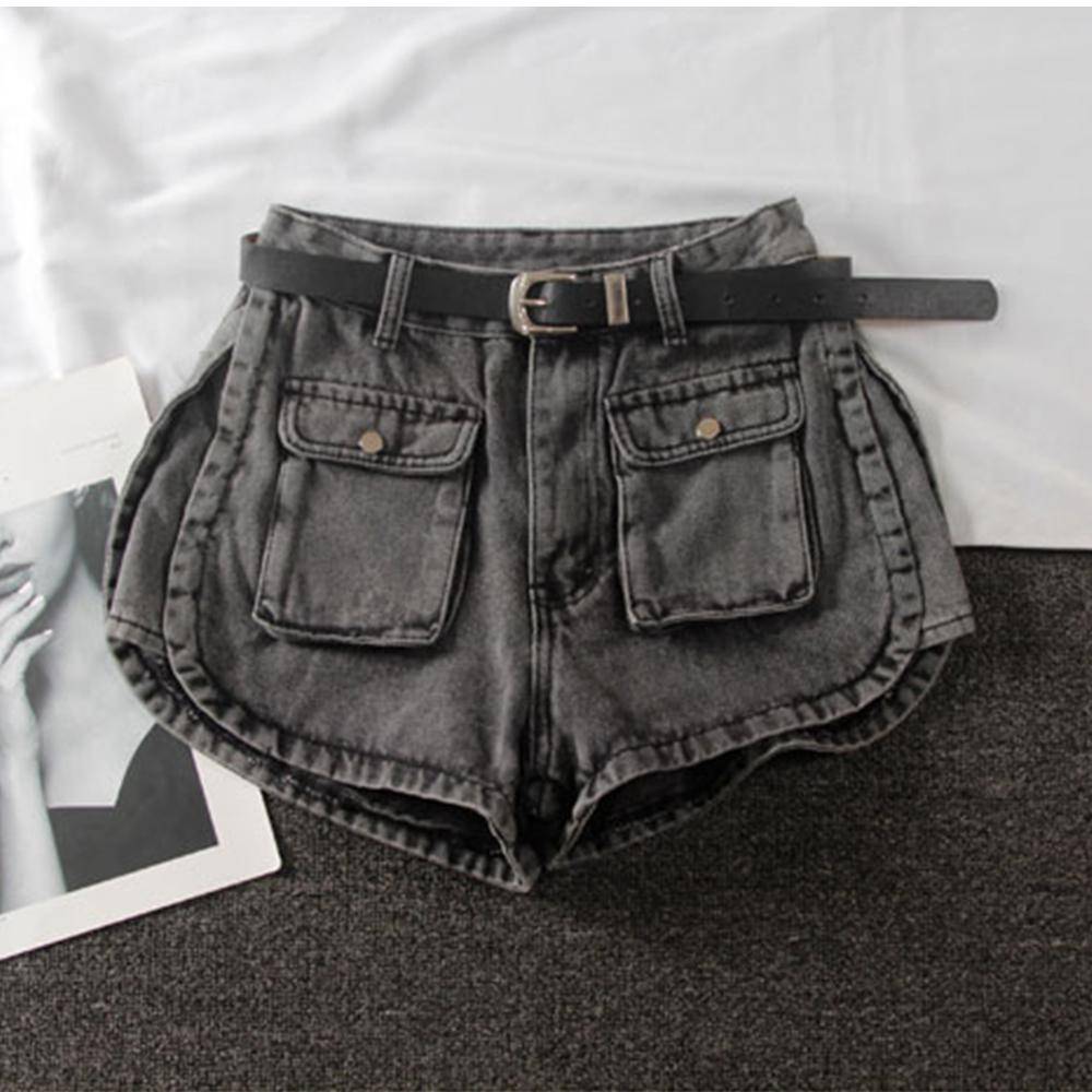 Cotton Jeans Pockects Decoration Solid Pattern Short Jeans