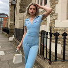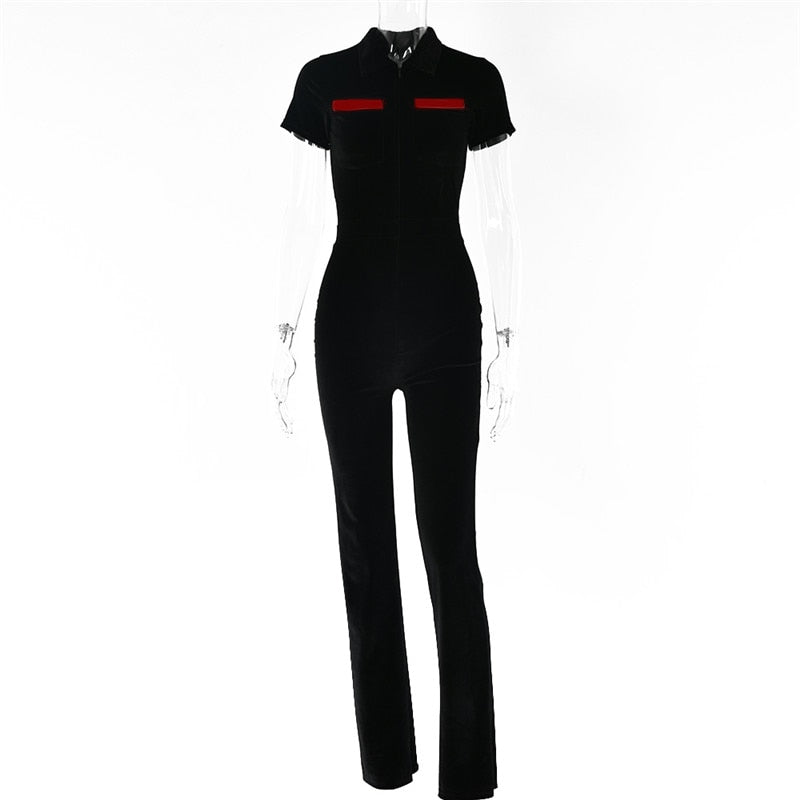 Short Sleeve Jumpsuit Double Pockets with Polyester Spandex Material