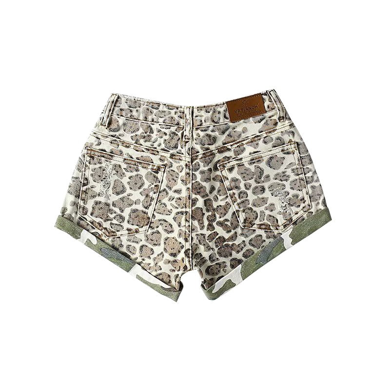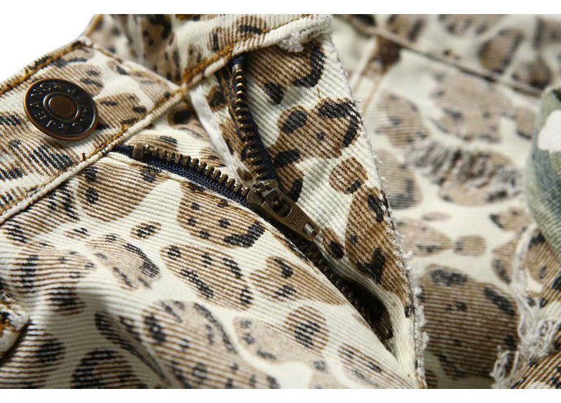 Leopard Patterned Shorts with Pocket, Zipper Fly, and Cotton Polyester Material