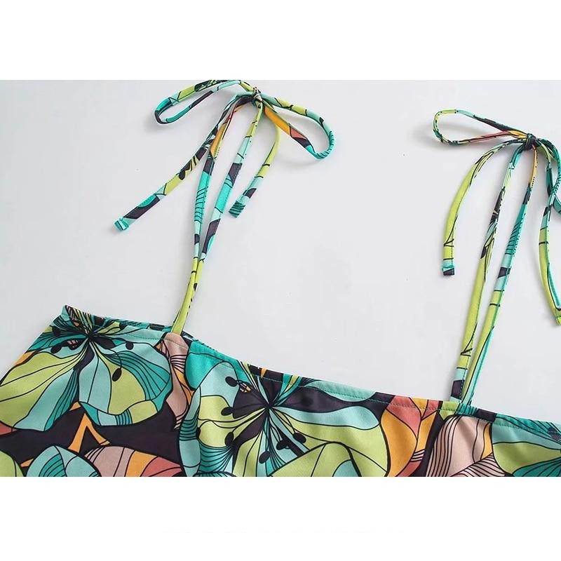 Floral Patterned Camisole Tops with Spaghetti Straps and Woven Fabric Type