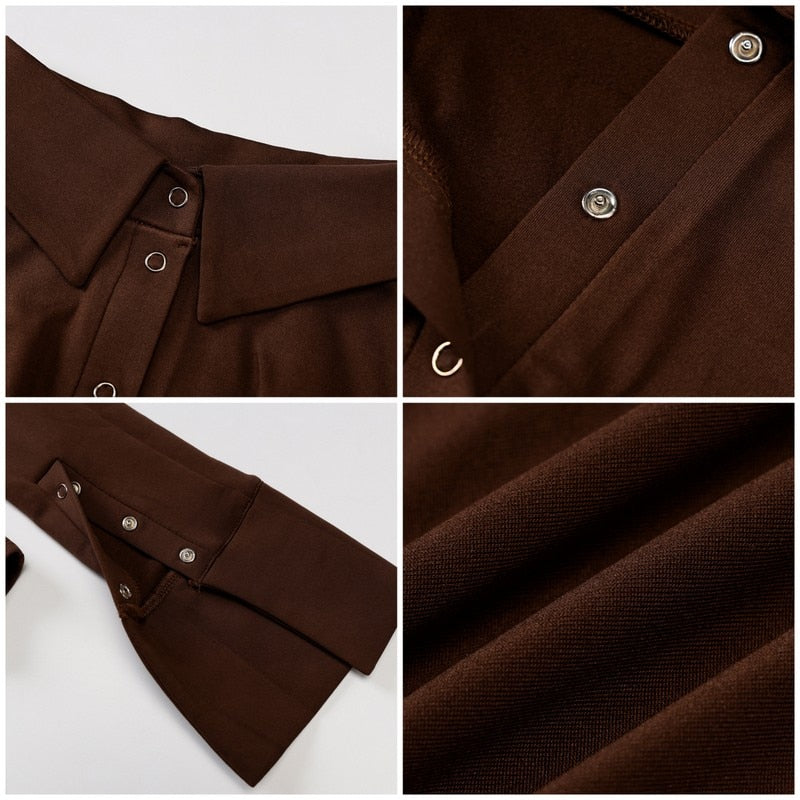 Solid Long-Sleeved Polyester Spandex Bodysuit with Turn-Down Collar and Button Closure