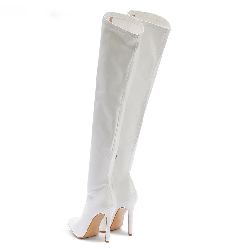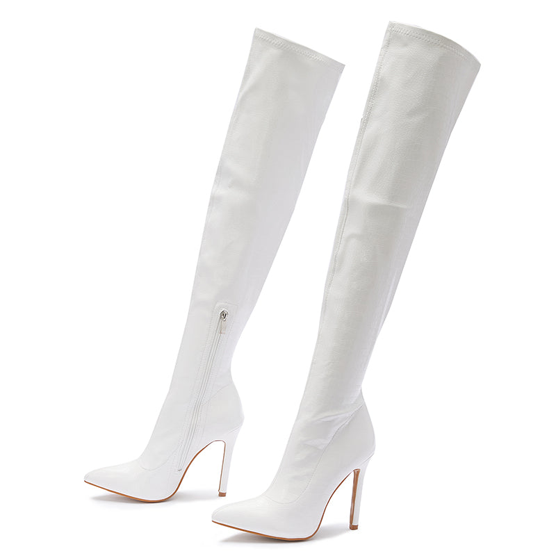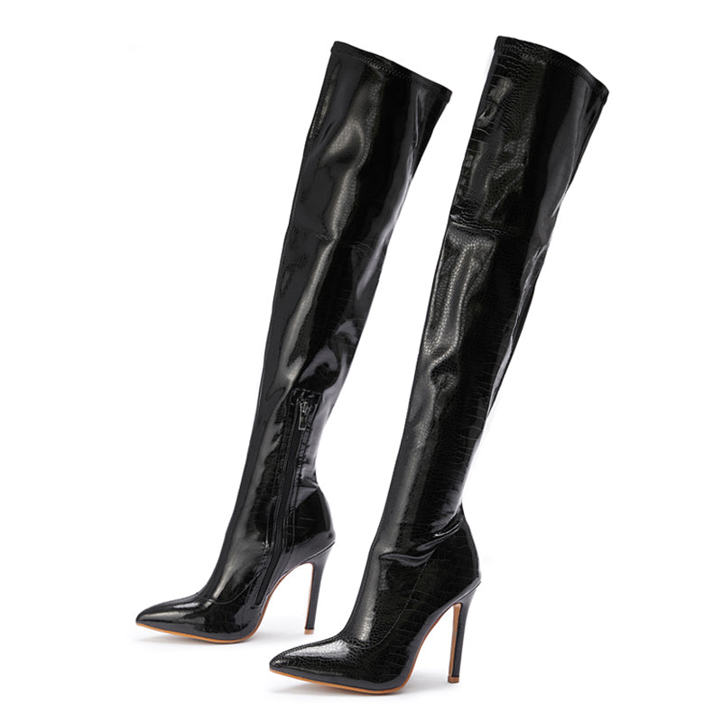 Stylish and sexy, these pointy-toe shoes are a must-have this season. The pointed toe makes them perfect for walking or dancing. The thin heel makes them easy to wear for all day. They are also super easy to put on and take off, thanks to the over-the-knee side zipper.