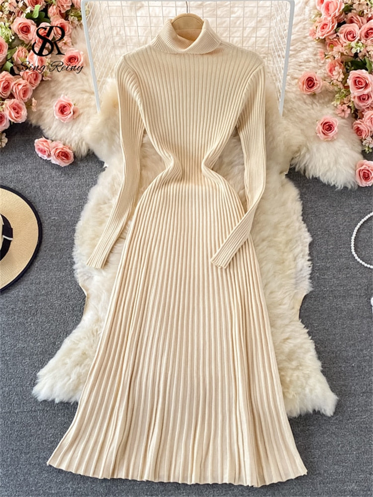 Here's a versatile and stylish outfit that will take you from day to night. With a soft and comfortable knit fabric, this versatile dress can be worn for a variety of occasions. The A-line silhouette offers a flattering fit that will keep you looking and feeling your best.