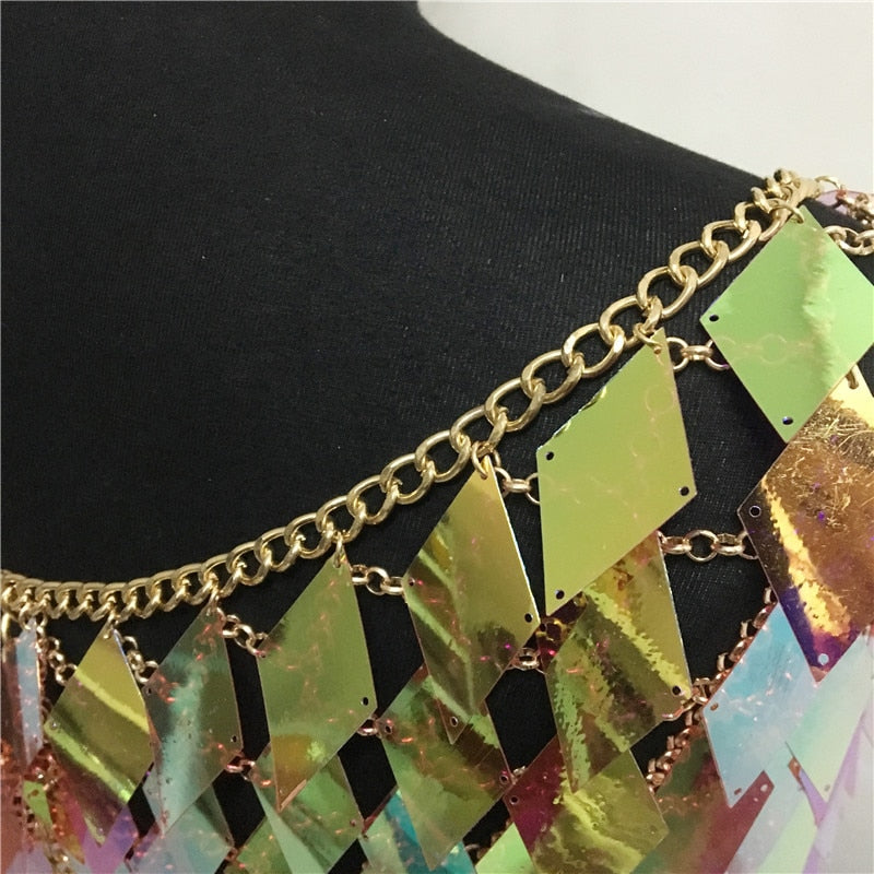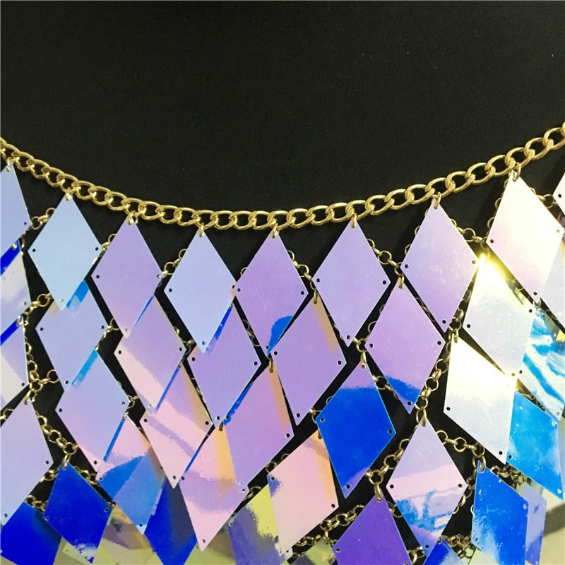 Give your look a special twist with this attractive chain jewelry piece. A bold diamond-shaped sequin is an eye-catching accessory that will give off a glamourous look that is sure to turn heads.