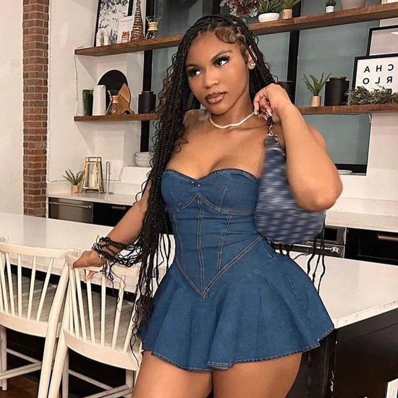 Elevate your style with the Untake This Heart Mini Dress! Perfect for any occasion, this strapless dress features flattering draping and hits above the knee for a flirty look. Made with a blend of cotton, polyester, and denim, you'll be both comfortable and stylish in this must-have dress.