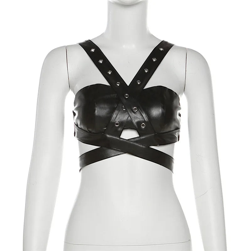 Unleash your inner rebel with our Vandal Kiss Crop Tank Top. Made with soft, breathable polyester and featuring a trendy hollow out design, this solid crop top is perfect for making a statement. Express yourself and embrace your individuality in style. Own your look, own your attitude!