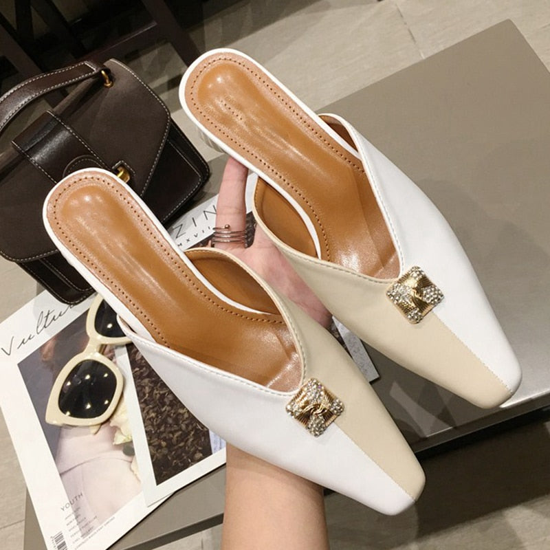 Microfiber Mixed Side Color Mules Shoes