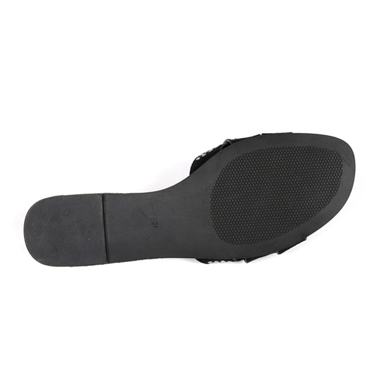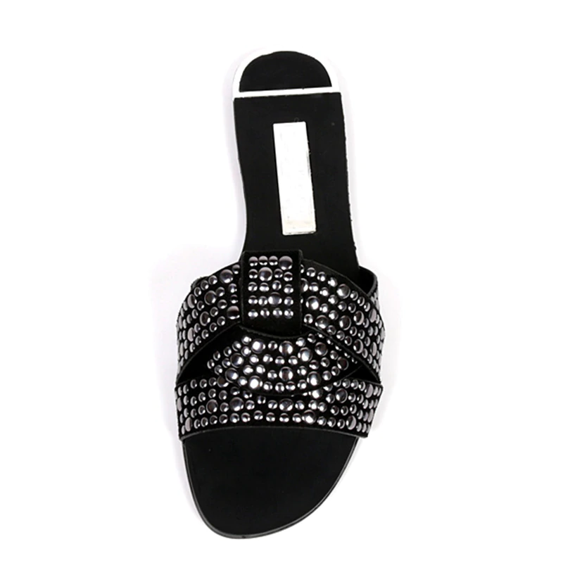Rhinestone Decorated PU Leather Slip-On Flat Sandal