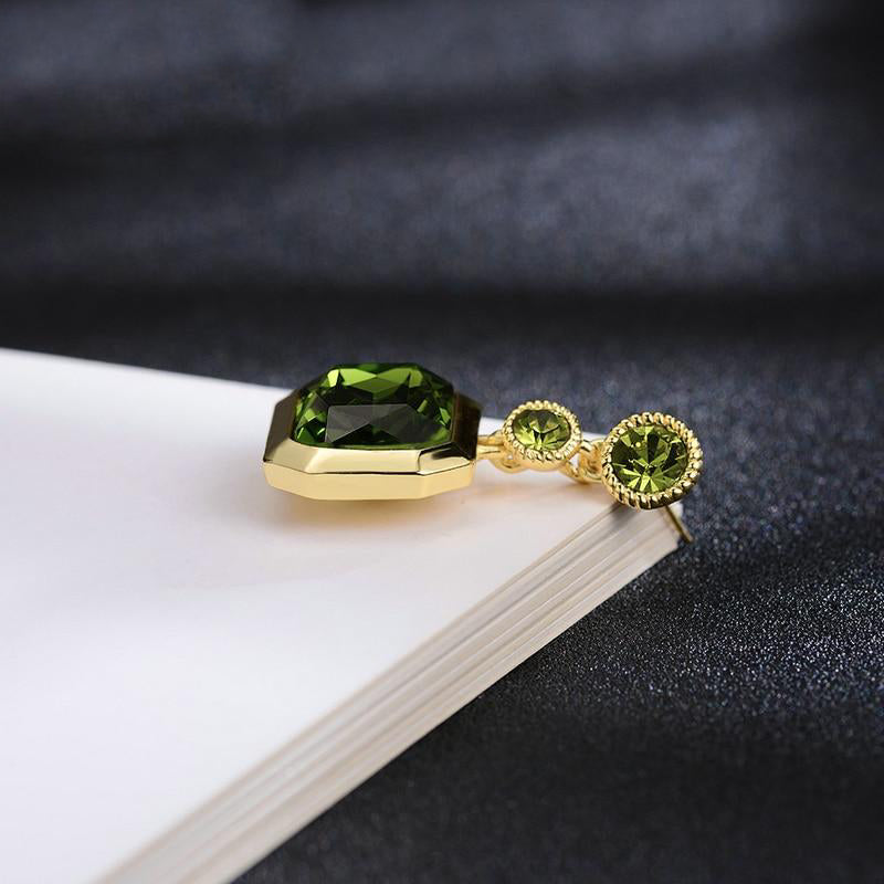 Copper Square Big Olive Green Crystal Woman Drop Earrings